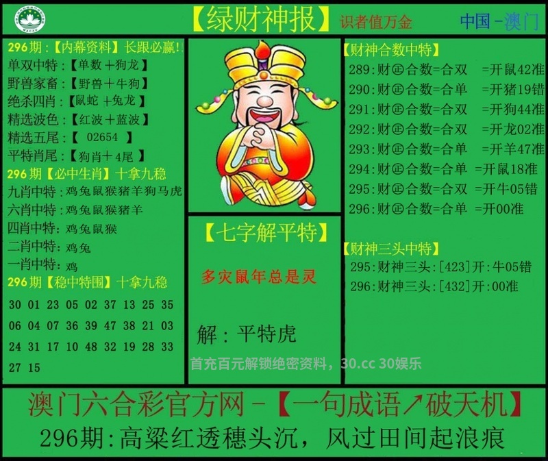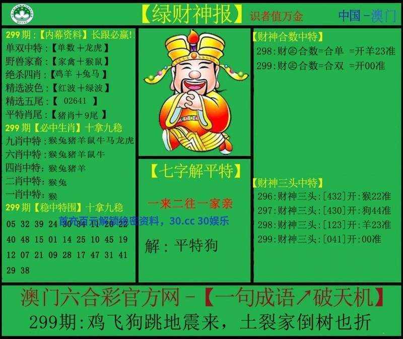 300期:初沫柒柒【平特★二肖】恭喜发财